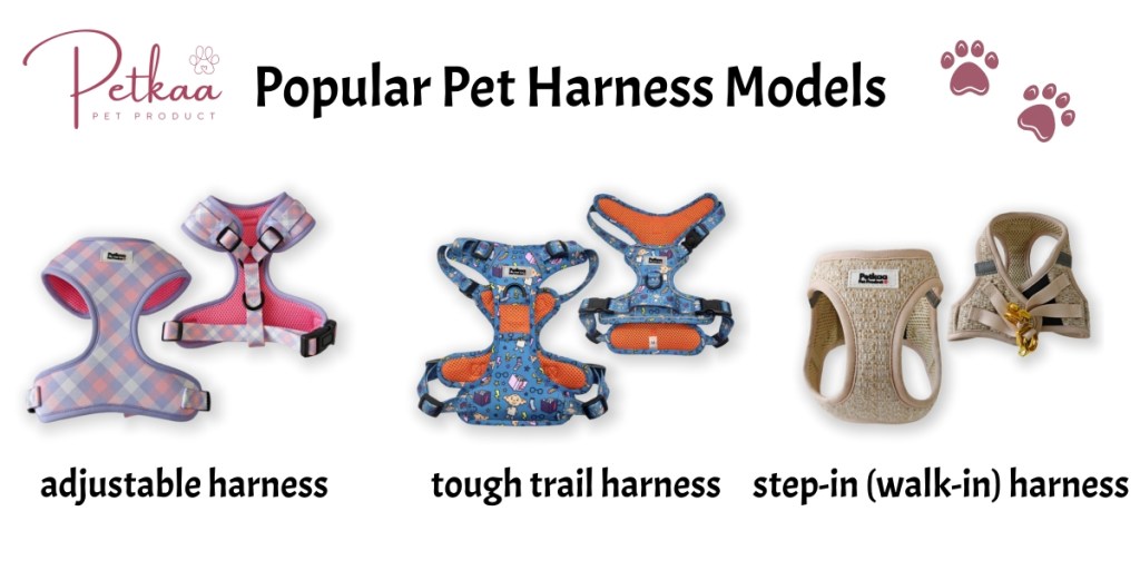 - Popular Pet Harness Models: What’s the Difference and How to ChooseWhen creating a successful pet product line, understanding different harness types is crucial for comfort, control, safety, and style. The article discusses three popular harness models: Adjustable Harness, Step-In Harness, and Tough Trail Harness. It highlights their features, target markets, and customization options to help brands effectively cater to customer needs.