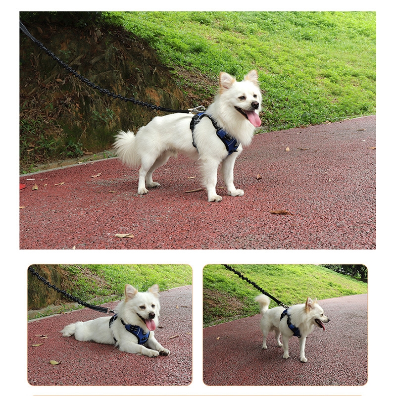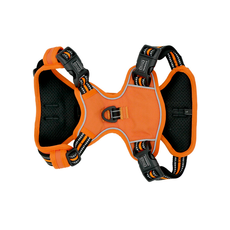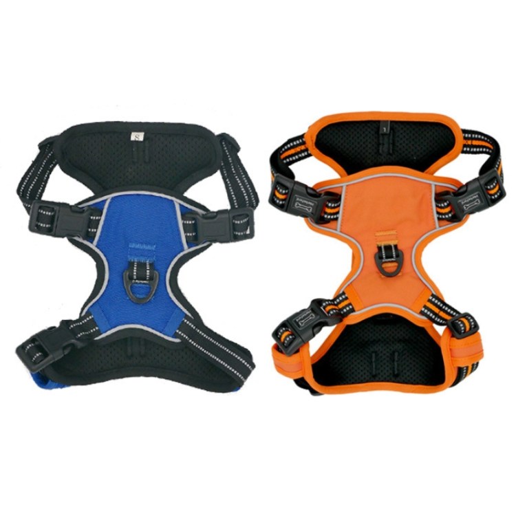 This practical dog harness is perfect for any dog of any breed (1.5kg-45kg). The reflective strips on the harness ensures our pets’ safety in darkness. Soft and ventilative lining mesh material is the key to our pets’ comfort level. Sharp blue and orange colors help pet owners to immediately spot their love ones anywhere.
