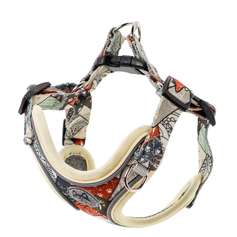 Petkaa dog vest harness HS009 is perfect for dogs of small to medium sized breeds(2kg-22.5kg). Lovely printed patterns and cool colors ensure that it’ll be your hot seller. Reflective strips is a must for a qualified pet harness. Soft and breathable lining mesh material and light weight nature of the harness is the key to our pets’ mobility. Matching leashes of the same patterns and colors are also available.