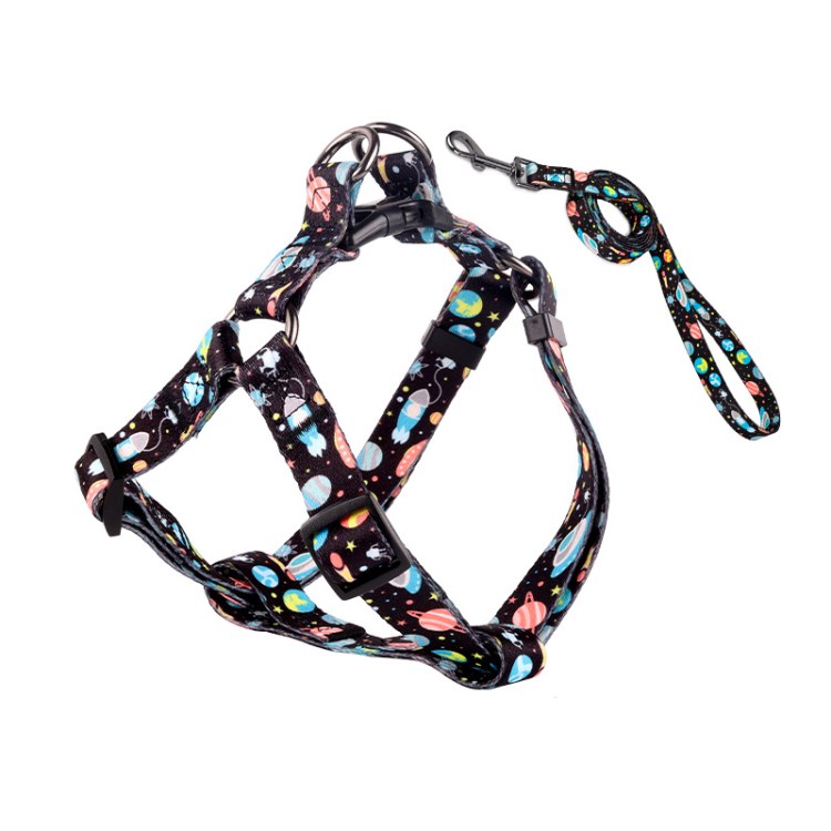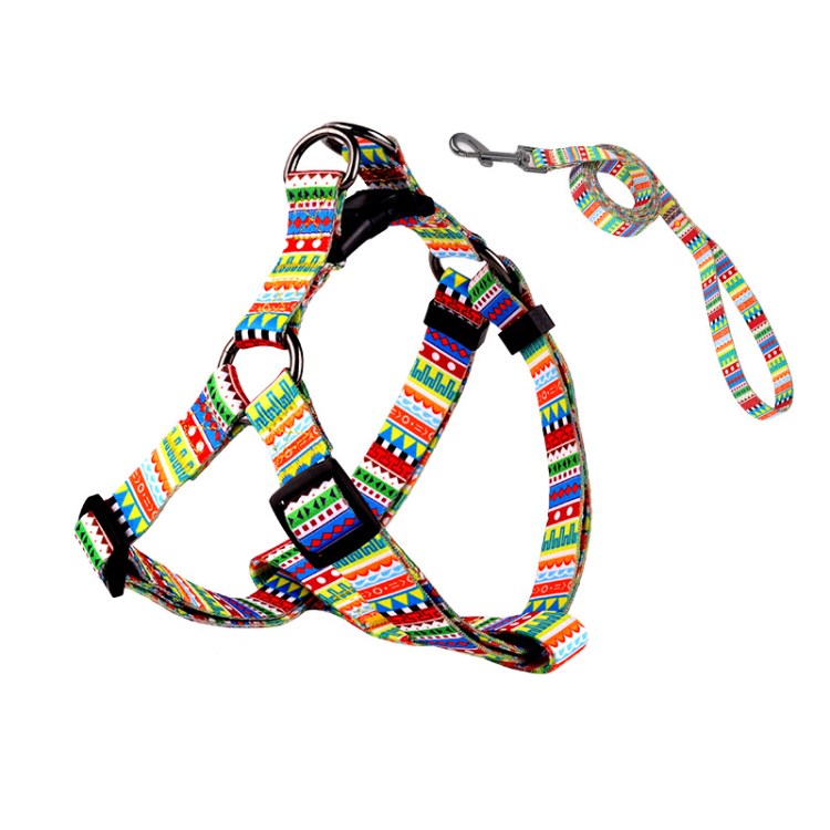 Printed Pattern Polyester Woven Webbing Dog Walk In Harness