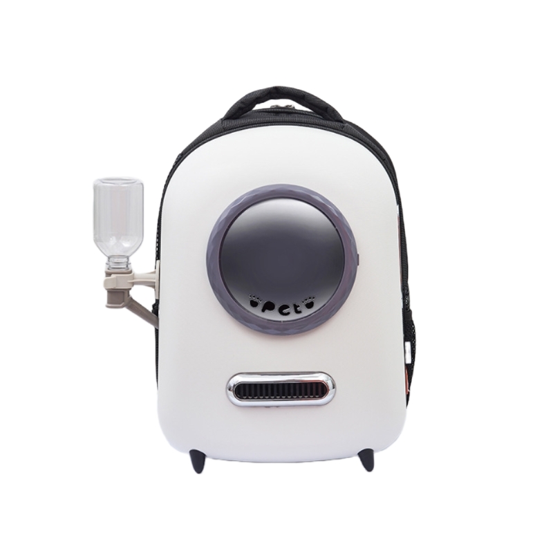 The Petkaa pet carrier TB008 is a pet travel carrying backpack suitable for cats and small dogs. It features its stylish design, fashionable colors, good quality material and high-tech functions. It’s available at low wholesale price and small quantities. Built-in LED light spare your pets from darkness. Built-in temperature and humidity sensor help pet owners to better care for their loved ones. Matching water feeder and fan give pets a wonderful travel experience.