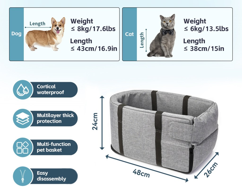 - Interactive Center Console Pet Seat: It can be placed on the center console between the seats of the car to increase the distance between your pet and you. Your pet can enjoy the scenery and have enough safety. Suitable for small dogs and cats.
