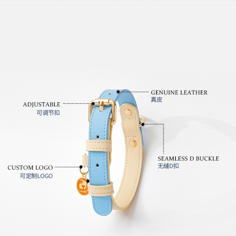 Macaroon Color Matching Genuine Cowhide Leather Dog Collar for Your Amazing Pet Business!