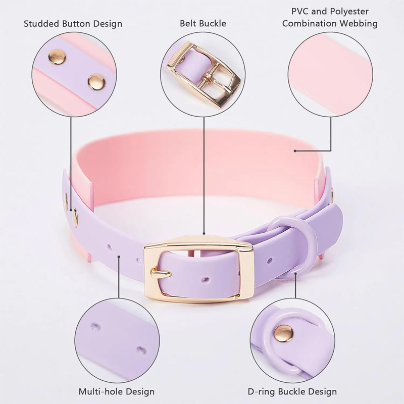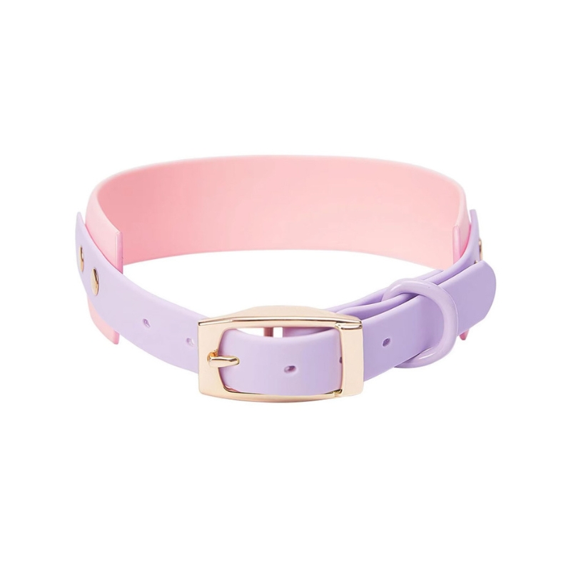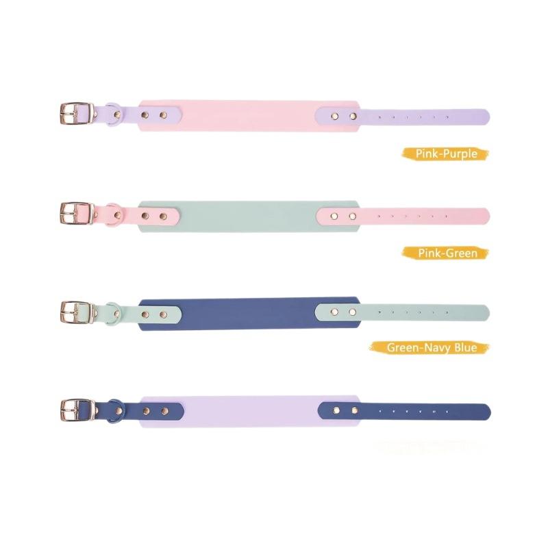 The Petkaa Pet Collar CL034 PVC rubber dog collar comes in stylish macaron colors (pink, purple, green or customized) with water-proof, odor-proof PVC rubber coating. It includes adjustable sizes (S, M, L) and a matching leash. Small quantity/customization wholesale OEM/ODM orders are highly welcomed.