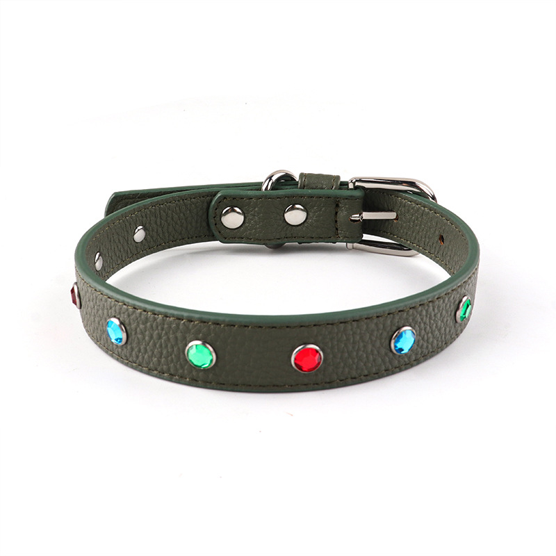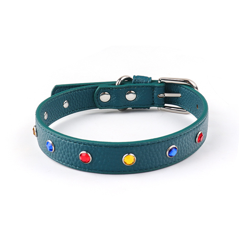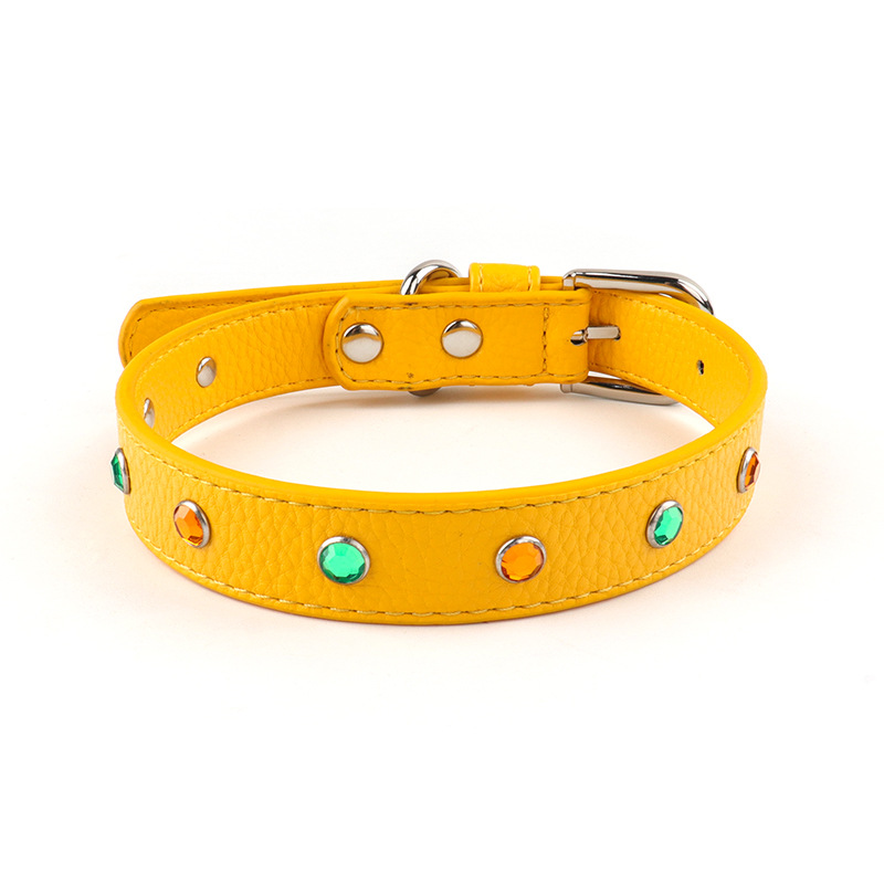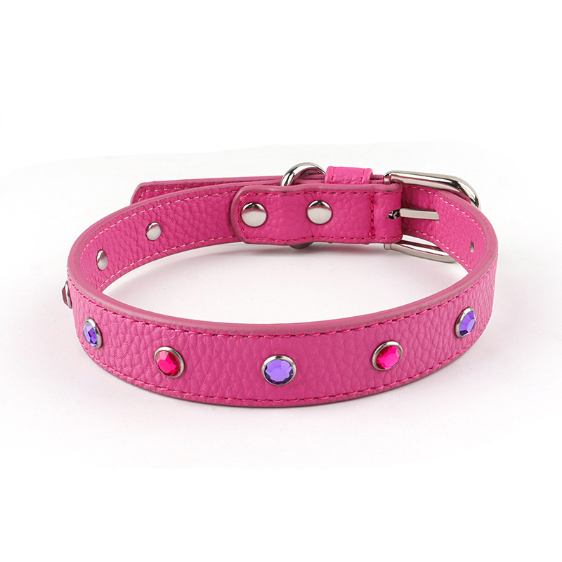 Features: colorful rhinestone decorated, gorgeous colors, gold stamp pvc logo, metal buckle, matching leash