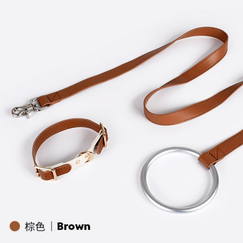 Classic Matching Color Leather Dog Collar Leash Set for Your Pet Business!