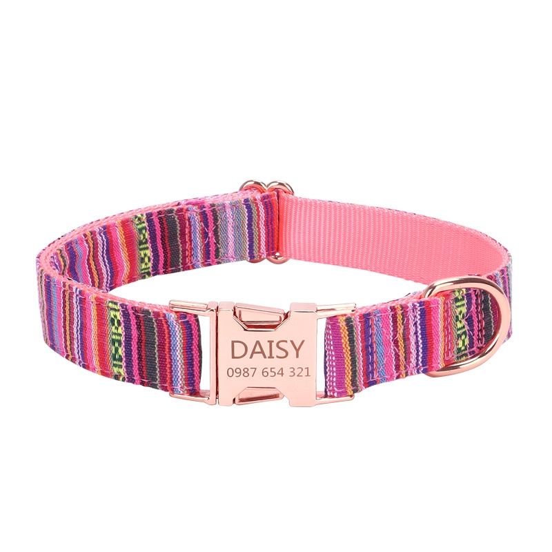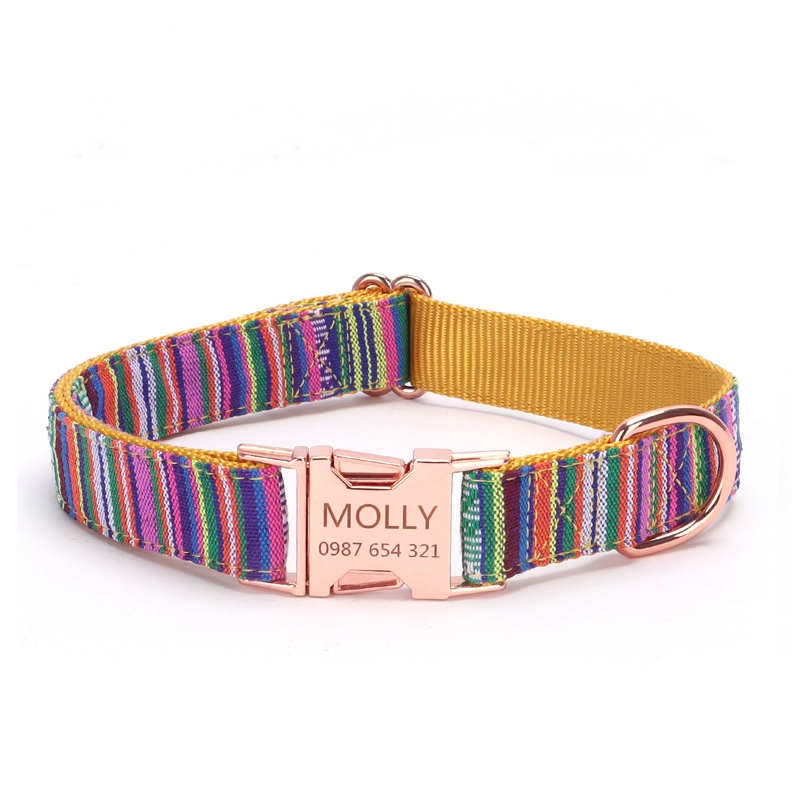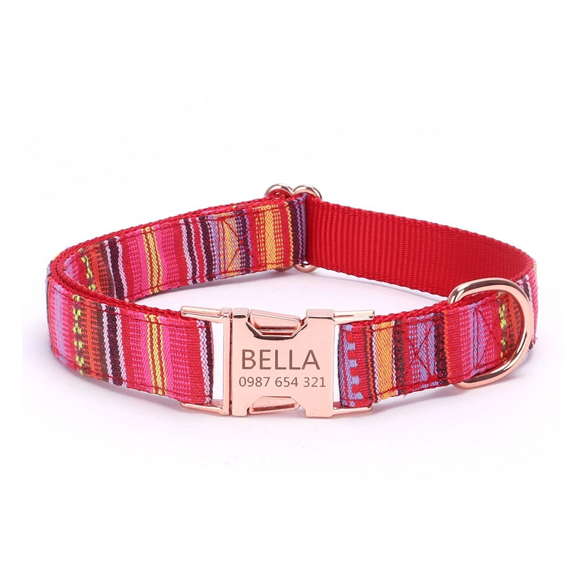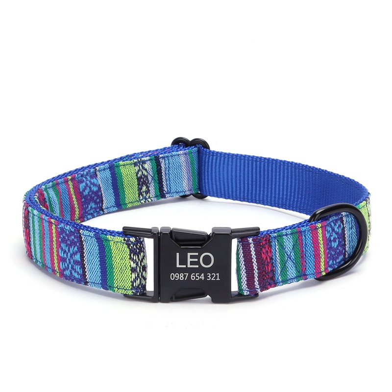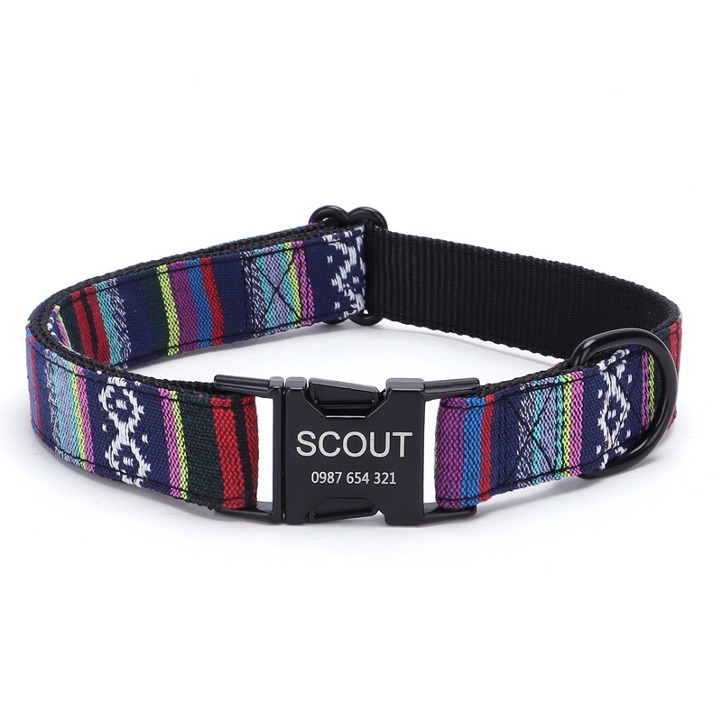 The Petkaa dog collar CL015 is a cloth collar that is made of nylon ribbon and yarn-dyed cotton cloth. It is so stylish that it will definitely stand out from a bunch of similar products. Five special and fashionable patterns are available to choose. Matching patterned dog leashes of the same material are also available. The collar can be sold separately or in a collar and leash set. The logo on the metal plate is customizable.