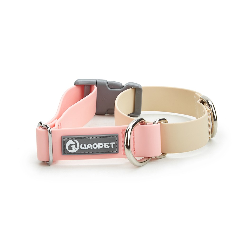 The Petkaa dog collar CL010 is a kind of pvc rubber coating pet collar that is not only fashionable but also functional. The use of pvc rubber coating ensures that the collar is both water-proof and odor-proof. The match of two adorable colors makes it stylish and good-looking. Matching colored leashes are available.