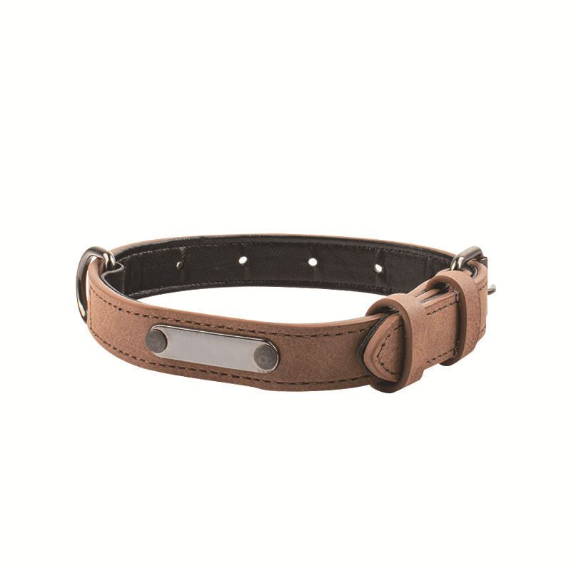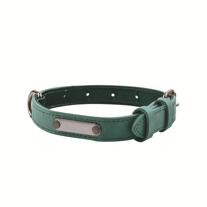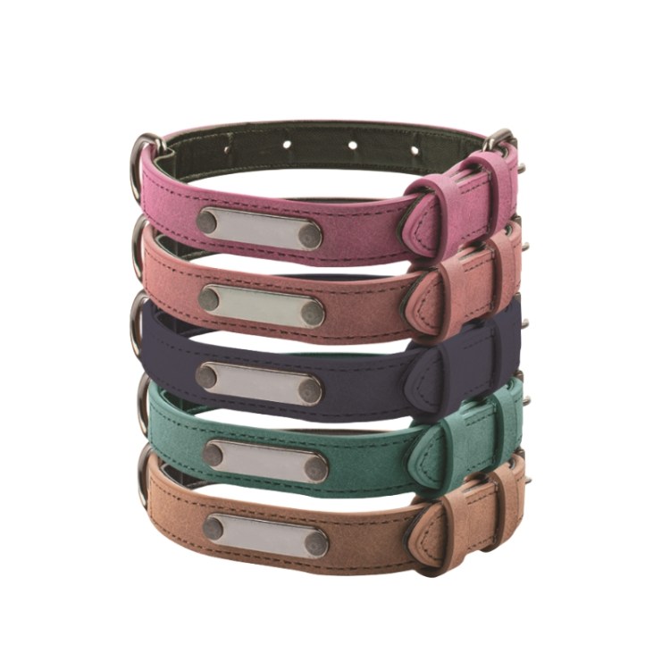 The Petkaa dog collar CL004 is designed for small to medium sized dogs, featuring five classic colors of light pink, flesh pink, dark blue, green and brown. Dull polish finish is adopted for the surface to reflect a glisten of retro and vintage. Customized etching logo on a metal plate is available so that you can put your own brand name on the pet collar.