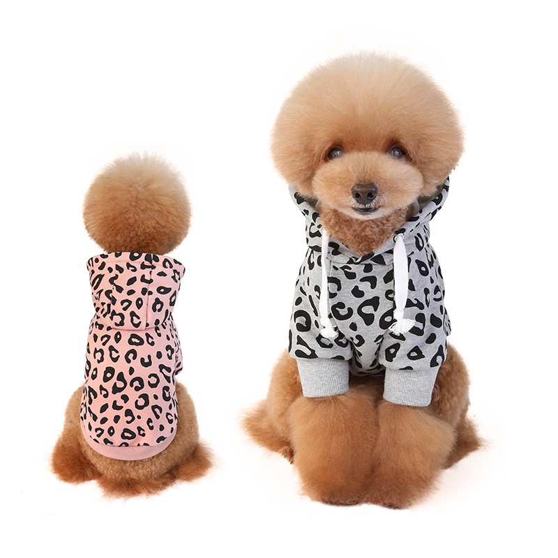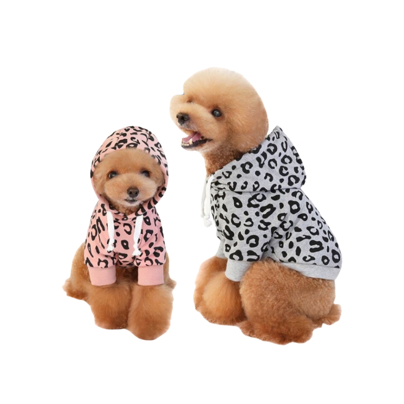 - Stylish Leopard Print Design: Stand out from the pack with our eye-catching leopard print design, available in two trendy colors – gray and pink. Your furry customers will look effortlessly fashionable in these striking hoodies.